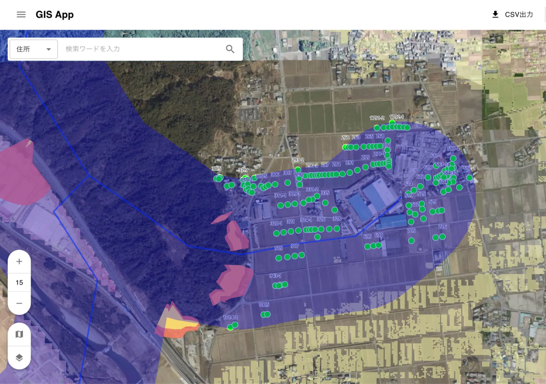 複数の地理情報を重ね合わせ、安全性や接続性など主要指標をクリアした農地をシステムが自動でリストアップ。 - 操作性の高いインターフェース